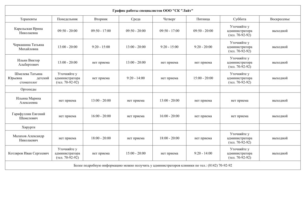 Прием граждан генеральным директором ООО "Стоматологическая клиника "Лайт" Хотулёвой Татьяной Викторовной) ведется только по предварительной записи каждый первый и третий вторник месяца с 15:00 до 17:00.